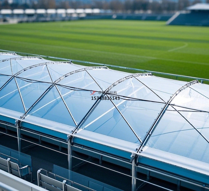 骨架式膜結(jié)構(gòu)在大型體育場館中廣泛應(yīng)用,其穩(wěn)定的鋼結(jié)構(gòu)骨架支撐大面積膜材,形成開闊的內(nèi)部空間。以足球場看臺(tái)為例,骨架式膜結(jié)構(gòu)可覆蓋整個(gè)觀眾區(qū)域,為上萬人提供舒適觀賽空間,且內(nèi)部無立柱阻擋視線,觀眾容量比傳統(tǒng)有柱看臺(tái)增加 10% - 15%。?