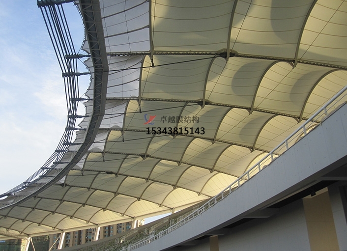 關于索膜解構的技術難點和維護。其技術難點主要是需要精密找形分析、分步張拉(如分12步提升無錫奧體索網),膜片熱合縫寬度需≥40mm(P類膜材)以確保強度。在維護方面也有要求,需要定期檢查膜面張力,規(guī)避局部集中荷載;清洗時禁用化學腐蝕劑,依賴雨水自潔或低壓水槍。索膜解構作為綠色建筑代表,正融合碳纖維索(如國內最長筋索應用)提升耐久性,并探索與BIM技術結合優(yōu)化設計施工一體化流程。索膜結構通過“力與形”的結合,突破傳統(tǒng)建筑局限,未來將在可持續(xù)建筑中持續(xù)發(fā)揮創(chuàng)新價值。