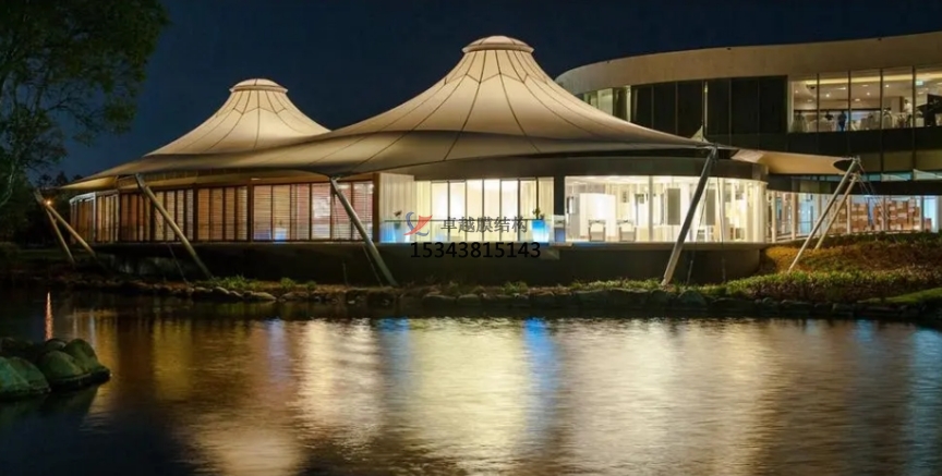 膜結構帳篷酒店的設計理念強調與自然環(huán)境的和諧共生。酒店通常選址于風景秀麗的自然景區(qū),如山林、湖畔、沙漠或草原,讓旅客在享受奢華住宿的同時,也能近距離感受大自然的魅力。帳篷酒店的外觀設計往往融入周邊的自然景觀,采用流線型或仿生形態(tài),仿佛是大自然中的一部分,與周圍的環(huán)境相得益彰。