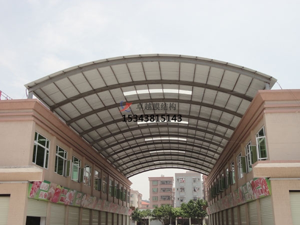 商業(yè)廣場雨棚搭建特點: