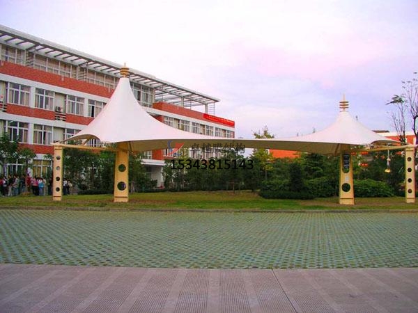 商業(yè)廣場(chǎng)雨棚搭建以其輕盈飄逸的造型、柔美并帶有力量的曲線和大跨度和大空間的鮮明個(gè)性和標(biāo)識(shí)性,并與園林景觀溶為一體。創(chuàng)造出讓人們盡情享受的快樂空間。充分展示了結(jié)構(gòu)構(gòu)件清晰受力的藝術(shù)之美,它巧妙的整合周圍的環(huán)境,給人們一種高貴典雅、浪漫溫馨之感。另外由于張拉膜材料本身特有的顯色性,在夜間彩燈的映射下能形成絢麗繽紛的景觀。不僅為人們提供遮陽避雨的空間。同時(shí),更由于這種生動(dòng)活潑的造型能給人們帶來時(shí)尚、輕松的休閑感受,所以廣受歡迎。