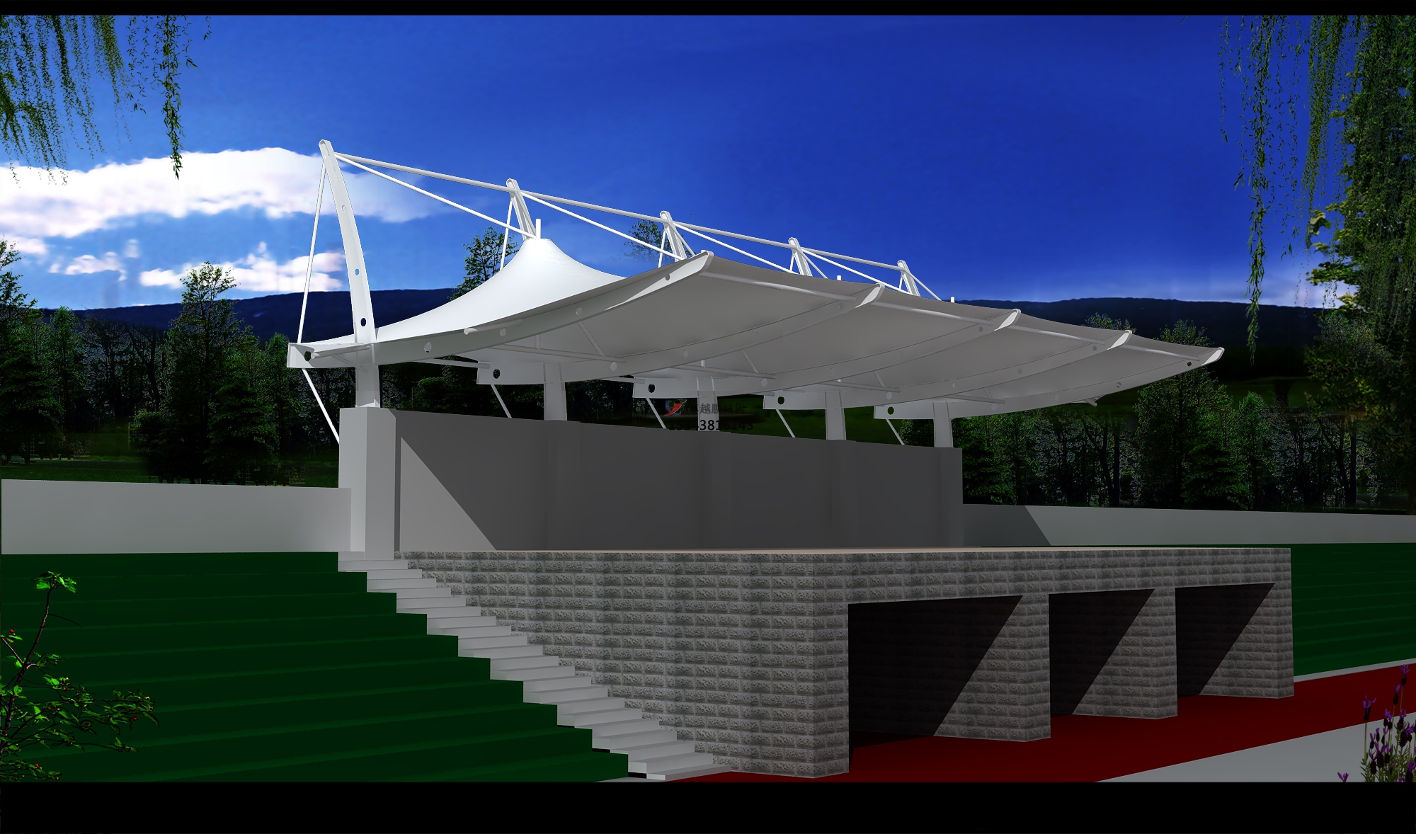 張拉膜看臺(tái)主要用于各類地方體育場(chǎng)主席臺(tái)雨棚,各類學(xué)校體育場(chǎng)看臺(tái)雨棚遮蓋,我公司是國內(nèi)較早從事大懸挑張拉膜結(jié)構(gòu)看臺(tái)設(shè)計(jì)施工的專業(yè)廠家,下面介紹一下我們?cè)谝瞬苓吙h市完工的一些張拉膜看臺(tái)設(shè)計(jì)施工案例,我公司先后在宜昌周邊承接了宜昌英杰膜結(jié)構(gòu)舞臺(tái)雨棚、宜昌市機(jī)電工程學(xué)校膜結(jié)構(gòu)舞臺(tái)罩棚、十堰市實(shí)驗(yàn)中學(xué)張拉膜看臺(tái)遮陽棚張拉膜看臺(tái)遮陽棚等設(shè)計(jì)施工項(xiàng)目,簡介如下: