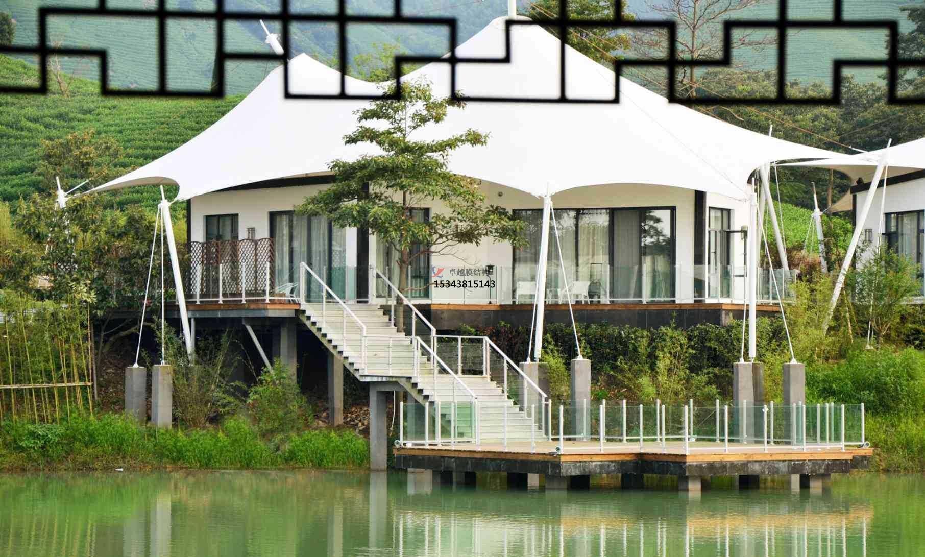 2、張拉膜景觀雙面覆蓋膜片錯排成較厚接點,錯排接點可以降低荷載傳遞的不連續(xù)性。