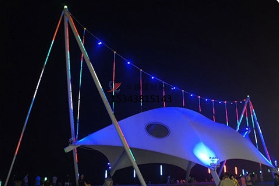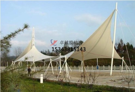 膜結(jié)構(gòu)景觀棚以其輕盈飄逸的造型、柔美并帶有力量的曲線和大跨度和大空間。