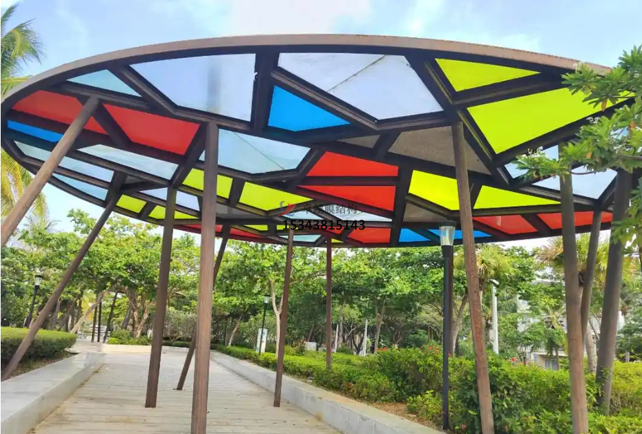 在實(shí)際應(yīng)用中,PVDF膜材常常被用于各類膜結(jié)構(gòu)屋頂,遮陽棚停車棚等場(chǎng)景。在炎熱地區(qū)采用PVDF膜布建造的停車棚不僅能有效阻擋陽光直射,降低車內(nèi)溫度還能通過自身的反光特性減少熱輻射;而在寒冷地帶,這種材料則以其良好的保溫性能幫助建筑物節(jié)約能源成本。可以說PVDF膜布的應(yīng)用場(chǎng)景幾乎涵蓋了所有需要柔性覆蓋材料的地方。